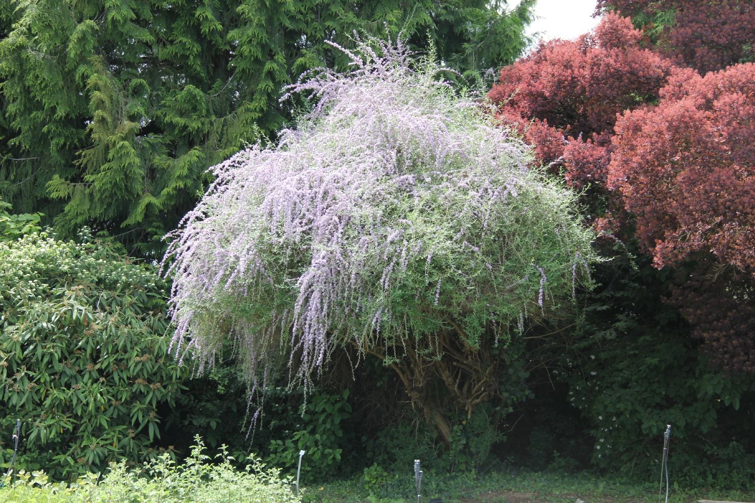 Überreich sind die mehrjährigen Triebe dieses Sommerflieders im Juni mit lavendelfarbenen Blütenbüscheln bedeckt. Der breit überhängende, schleppenartige Wuchs bildet ein markantes Strukturelement im sonnenverwöhnten Garten, wobei die gute Schnittverträglichkeit dieses anpassungsfähigen Ziergehölzes mit den weidenblättrigen Trieben auch für seine Verwendung als Spalier spricht.