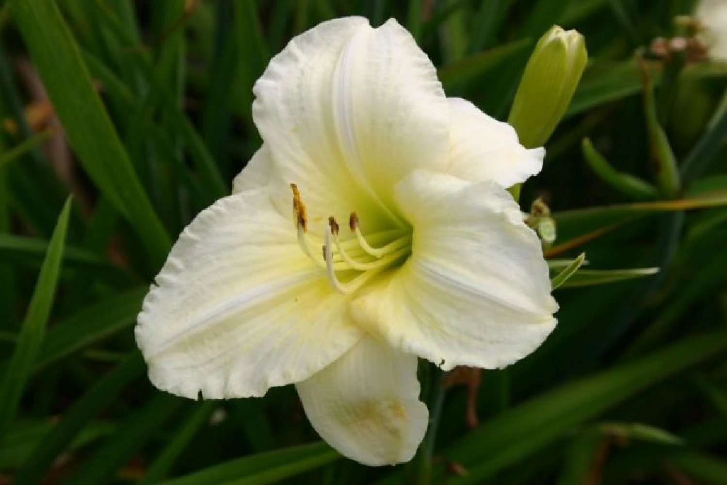 Für eine Verlängerung und Ergänzung der Blütezeit lohnt es sich, im Herbst Blumenzwiebeln wie etwa Tulpen zu pflanzen. Sie sorgen Ende April, wenn die Stauden erst im grünen Laubgewand dastehen für erste Blütenfreude. Besonders geeignet für den Halbschatten sind sogenannte Viridiflora-Tulpen. Eine hohe Wand im Hintergrund lässt sich zusätzlich, auch in halbschattiger Lage, mit Kletterrosen wie z.B. der zartgelben, englischen Rose ‚Malvern Hills‘ oder der weißen Kletterrose ‚Guirlande d’Amour‘ begrünen. Ihre zarten, kleinen Blüten harmonieren perfekt mit den Farben des Beetes.