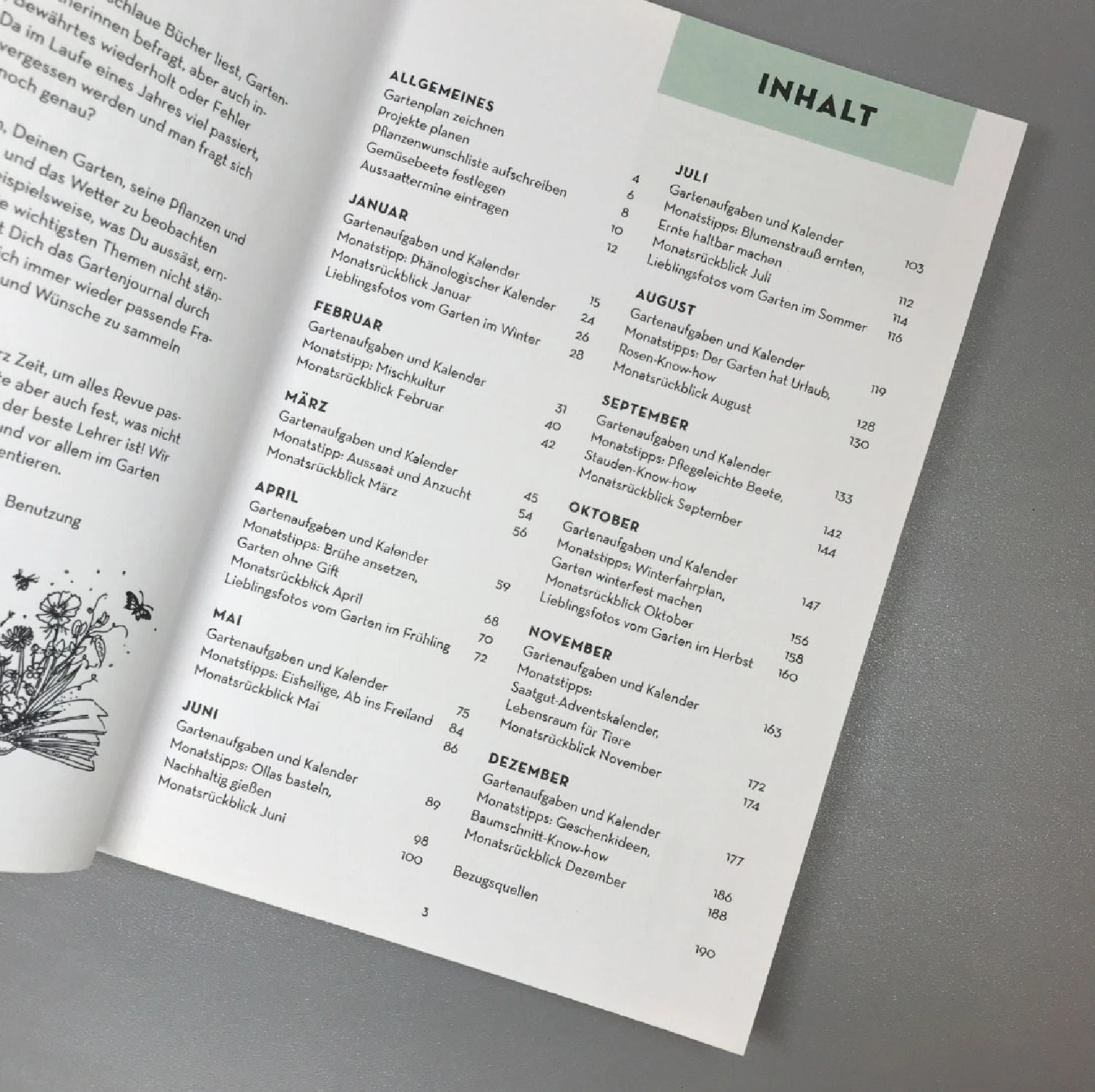 Das Journal ist als immerwährender Kalender gestaltet, gespickt mit hilfreichen Tipps und Anleitungen und viel Platz zum Eintragen von Projekten, Beobachtungen und Ideen. So wird besseres Gärtnern ganz einfach.